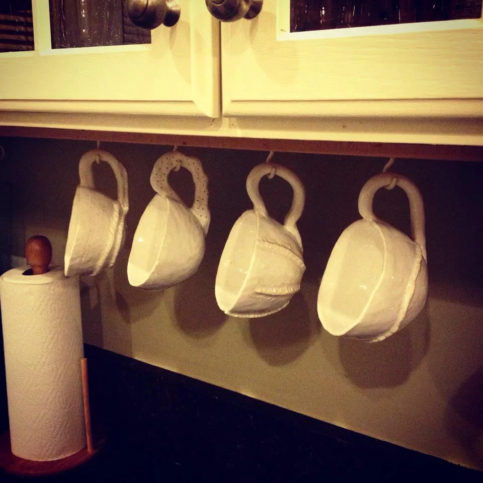 El resultado son 4 tazas blancas, algo nuevo para mi. Todas con una textura en particular, haciendolas distintas, pero manteniendo una familiaridad.